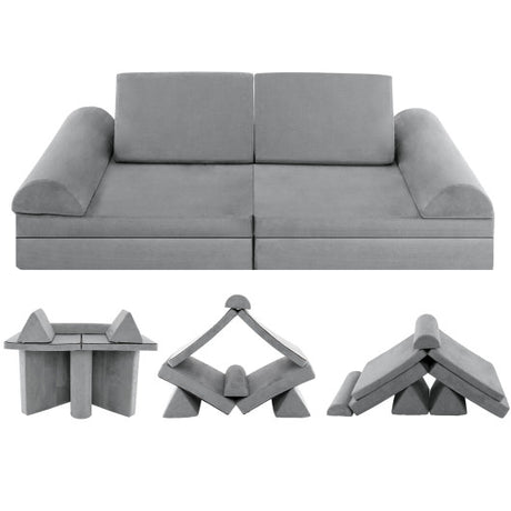 10-Piece Kids Play Couch Sofa with Portable Handle-Gray