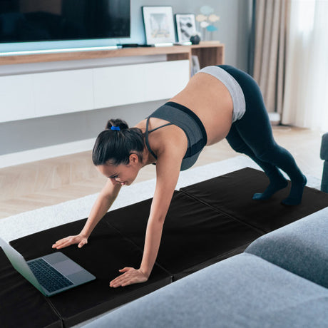 Folding Gymnastics Mat with Carry Handles and Sweatproof Detachable PU Leather Cover-Black