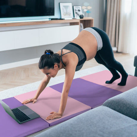 Folding Gymnastics Mat with Carry Handles and Sweatproof Detachable PU Leather Cover-Pink