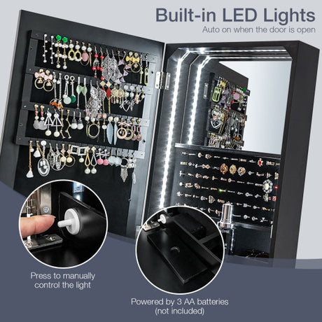 Freestanding Full Length LED Mirrored Jewelry Armoire with 6 Drawers-Black