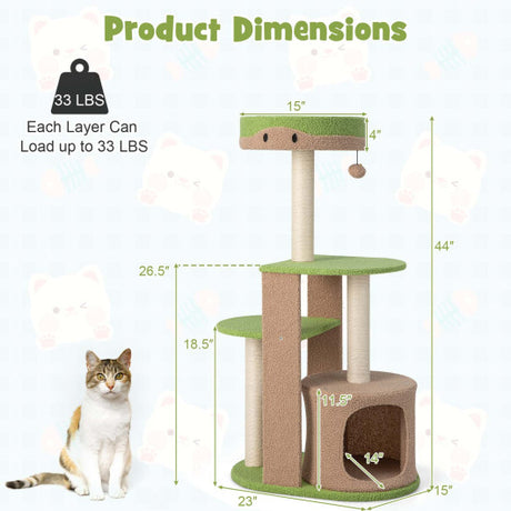 5-Tier Modern Cat Tree Tower for Indoor Cats with Sisal Scratching Posts-Green