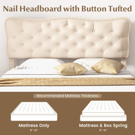 Full/Queen Size Bed Frame with Nail Headboard and Wooden Slats-Queen Size