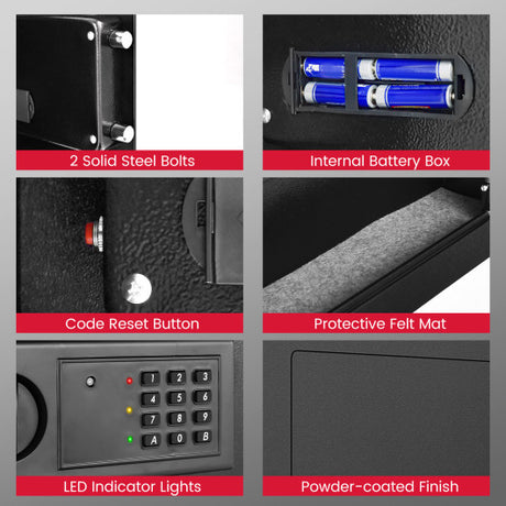 Digital Flat Recessed Wall Safe Security Lock Gun Cash Box-Black