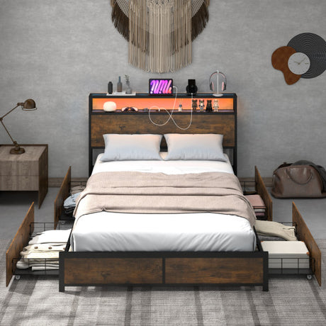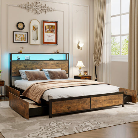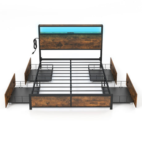 Full/Queen Size Bed Frame with Smart LED Lights and Storage Drawers-Queen Size