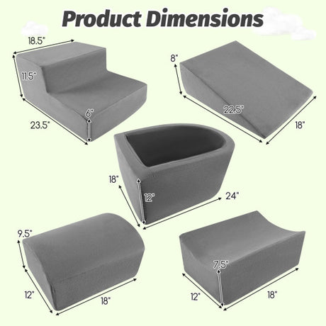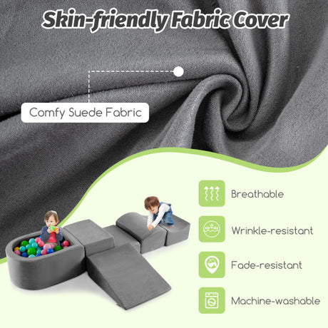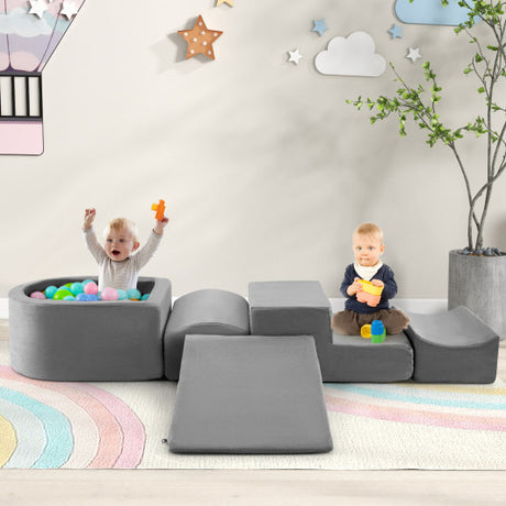 5-Piece Climb and Crawl Playset with Ball Pit for Kids-Gray