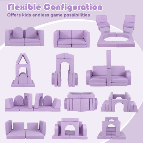 8-Piece Modular Kids Play Couch with Comfy Suede Fabric-Purple