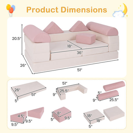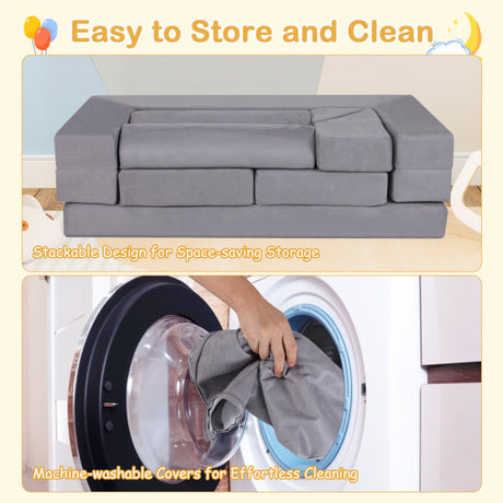 8-Piece Modular Kids Play Couch with Comfy Suede Fabric-Gray