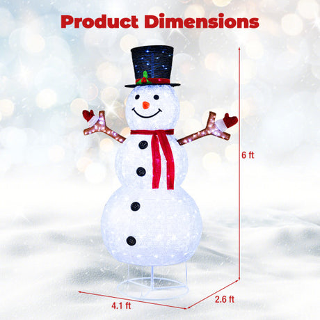 6 Feet Pre-Lit Christmas Snowman with Built-in Lights and Black Hat