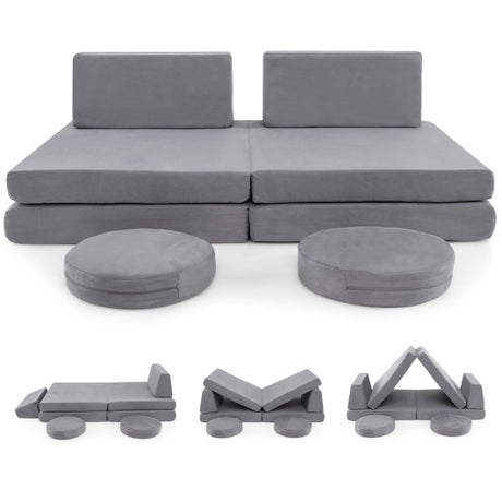 6 Pieces Modular Kids Play Couch Set with Washable Covers for Living Room Playroom-Gray