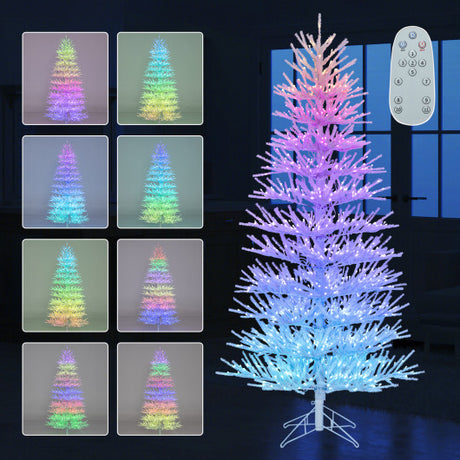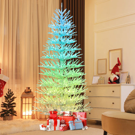 7 FT Artificial Pre-lit Christmas Tree Hinged Xmas Tree with 820 Coral-like Branch Tips