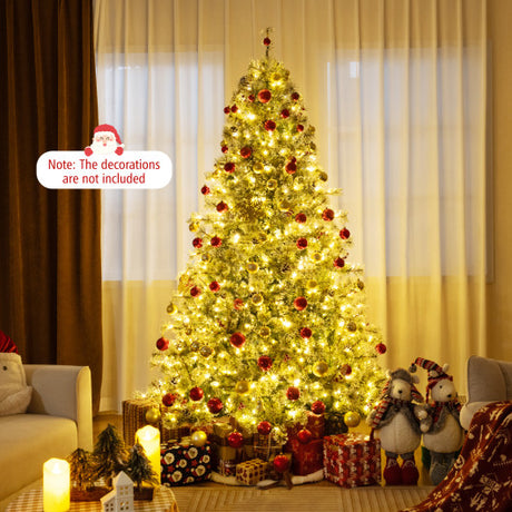 6/7.5/9 FT Artificial Christmas Tree Pre-Lit Hinged Holiday Tree with 360° Quick Power Connector-9ft