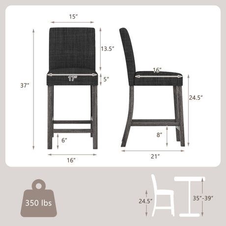 Counter Height Bar Stools Set of 2 with Back and Footrest-Gray