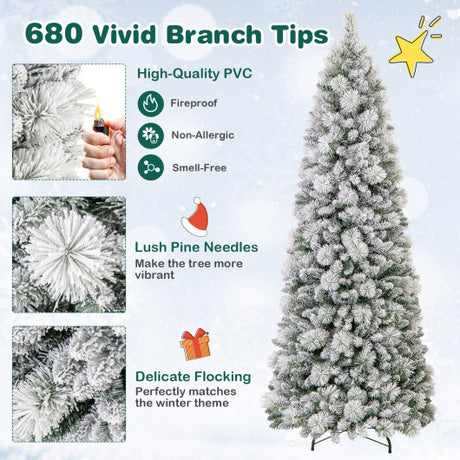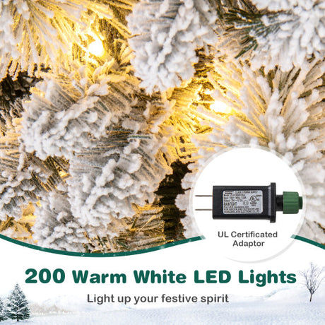7 Feet Flocked Christmas Tree with Pine Needles and LED Lights