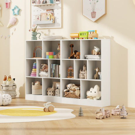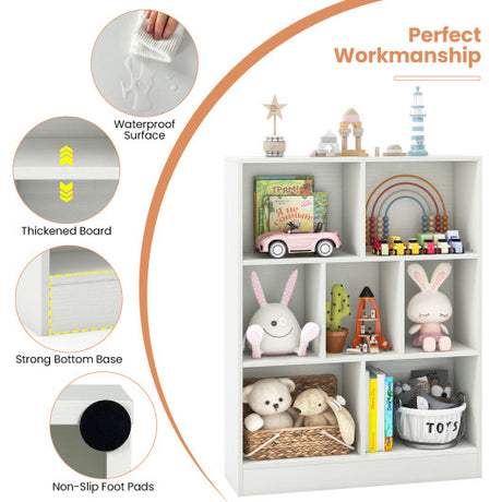 7-Section Freestanding Bookshelf for Kids Room Classroom Daycare Nursery-White