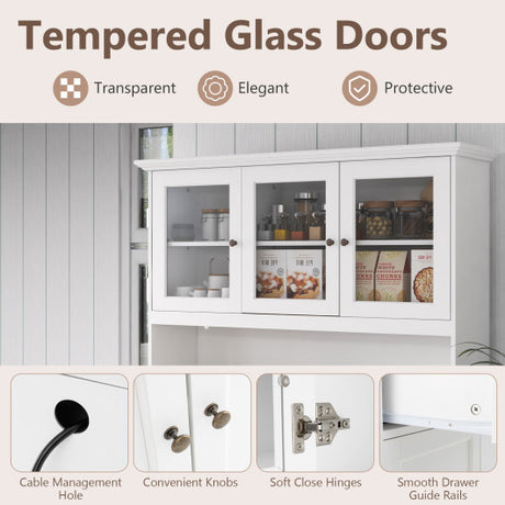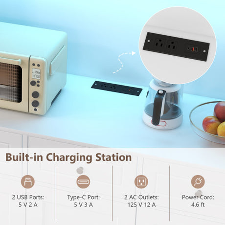 77 Inches Kitchen Pantry Storage Cabinet with LED Lights and Power Outlets-White