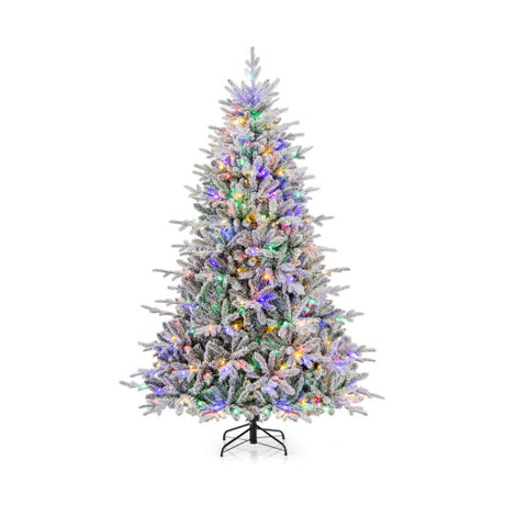 6 Feet Flocked Christmas Tree with 8 Lighting Modes and Multi-Color LED Lights-6 ft
