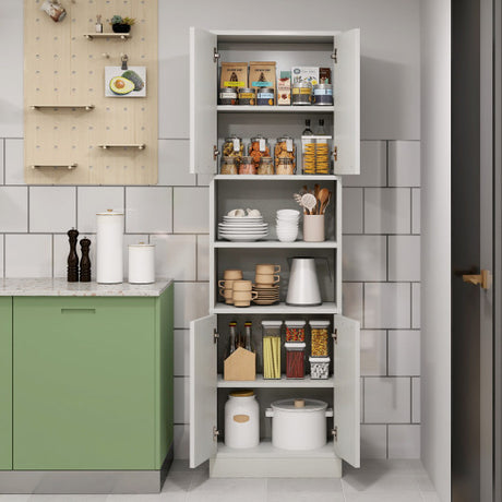 75 Inch Kitchen Pantry Cabinet Tall Cupboard with Doors and Shelves-White Oak