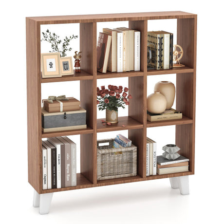 9-Cube Bookcase with 6 Removable Shelves and Raised Support Feet-Brown