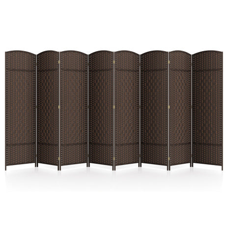 8-Panel Folding Room Divider with Hand-Woven Texture and Solid Wood Frame-Bown