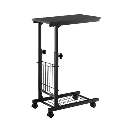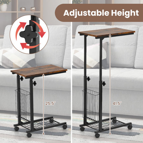 C-shape Sofa Side Table with Storage Basket-Rustic Brown