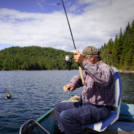 High Back Folding Boat Seat with Blue White Sponge Cushion and Flexible Hinges-Blue