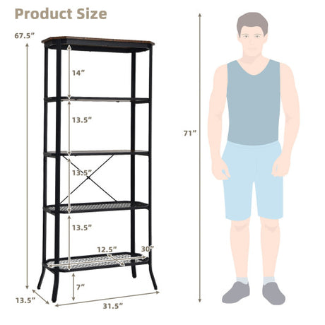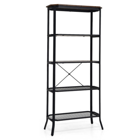 Industrial 5-Layer Bookshelf with Out-Stretched Legs-Rustic Brown