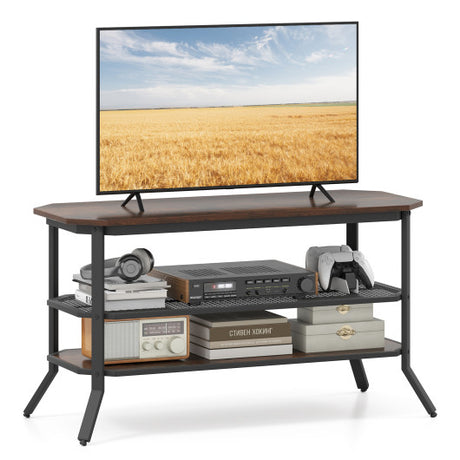 3-tier Console Table TV Stand with Mesh Storage Shelf-Rustic Brown