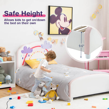 Kids Twin Size Upholstered Platform Wooden Bed with Rainbow Pattern