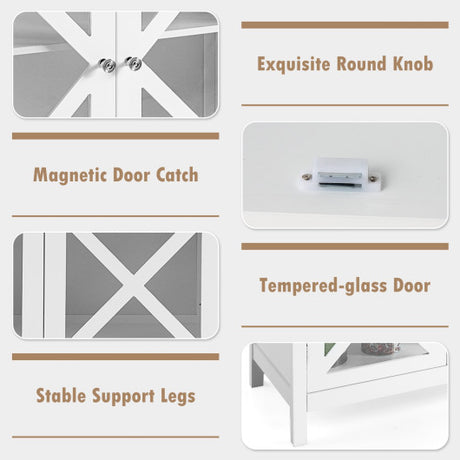 Freestanding Kitchen Buffet Cabinet with Glass Doors and Adjustable Shelf-White