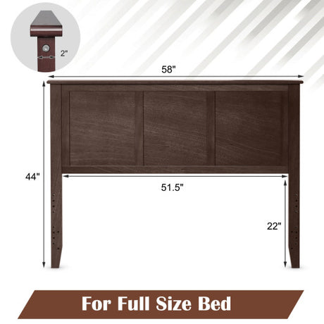 Full Wood Headboard Flat Panel with Pre-drilled Holes and Height Adjustment-Brown