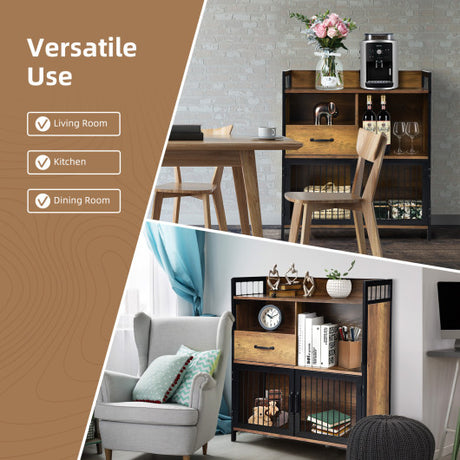 Buffet Cabinet with Drawer and Wood Storage Shelf for Kitchen-Rustic Brown