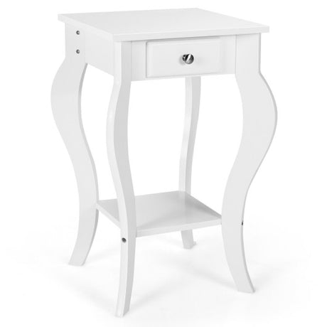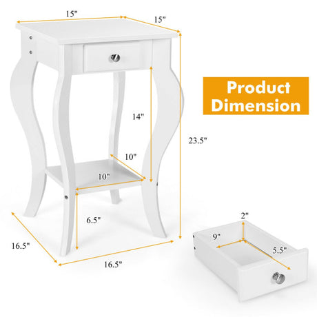 2-Tier End Table with Drawer and Shelf for Living Room Bedroom-White