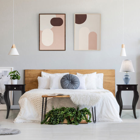 Multipurpose Retro Bedside Nightstand/ End Table with 2 Drawers-Black
