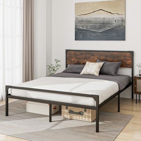 Full/Queen Size Metal Bed Frame Platform with Headboard-Queen Size