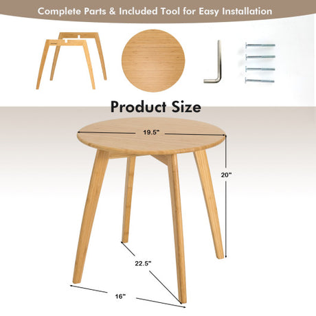 Natural Modern Stylish Bamboo Round End Table with 20 Inch Round Tabletop-Natural