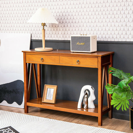 Console Table with Drawer Storage Shelf for Entryway Hallway-Cherry