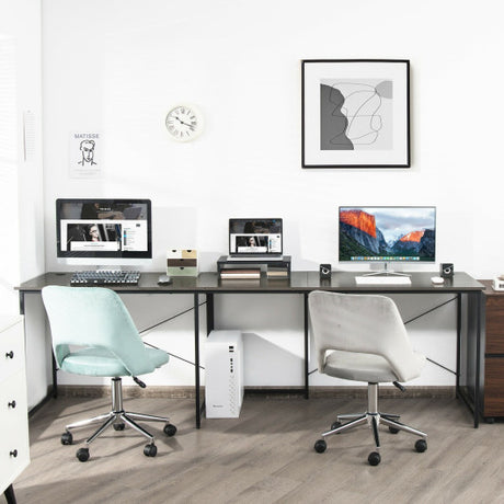 95 Inch 2-Person L-Shaped Long Reversible Computer Desk with Monitor Stand-Brown