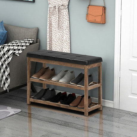 2-Tier Wooden Shoe Rack Bench with Padded Seat-Brown