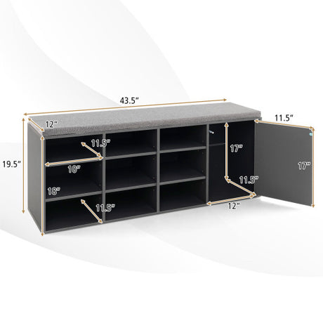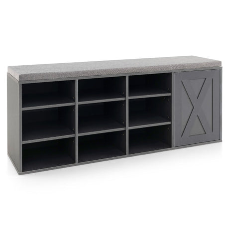 9-cube Shoe Bench with Adjustable Shelves and Removable Padded Cushion-Gray