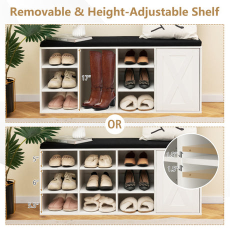 9-cube Shoe Bench with Adjustable Shelves and Removable Padded Cushion-White