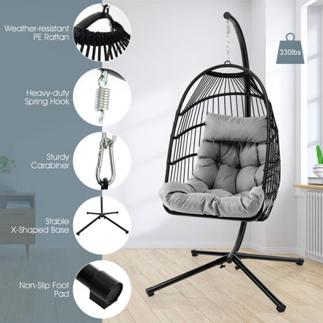 Egg Chair with Stand PE Rattan Swing Hammock Chair with Pillow and Cushion-Gray