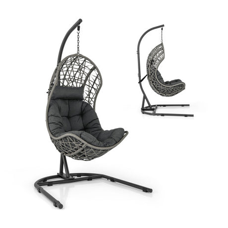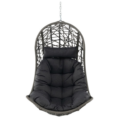 Hanging Egg Chair PE Rattan Swing Hammock Chair with Soft Pillow and Cushion-Gray