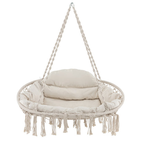 Hammock Chair with Thick Cushion & Macrame Holds up to 330 LBS-Beige