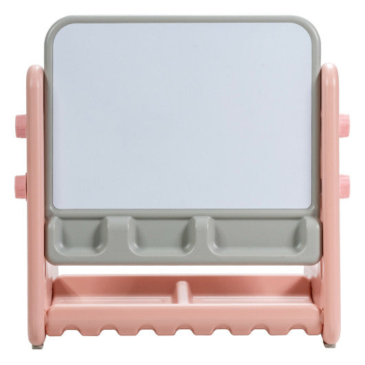 2 in 1 Kids Easel Table and Chair Set with Adjustable Art Painting Board-Pink
