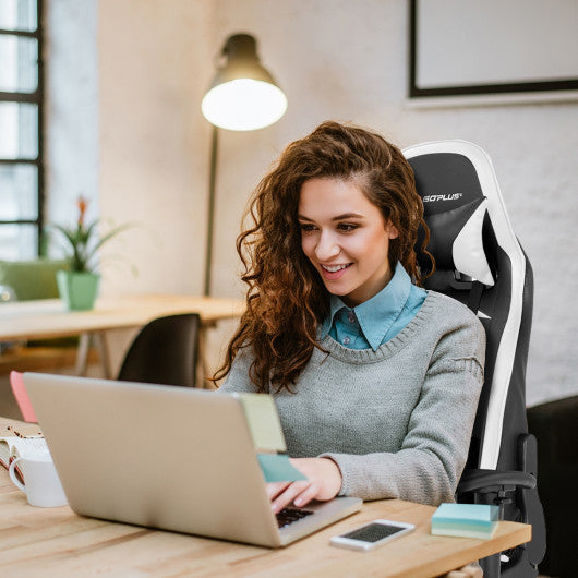 Massage Gaming Chair with Footrest-White