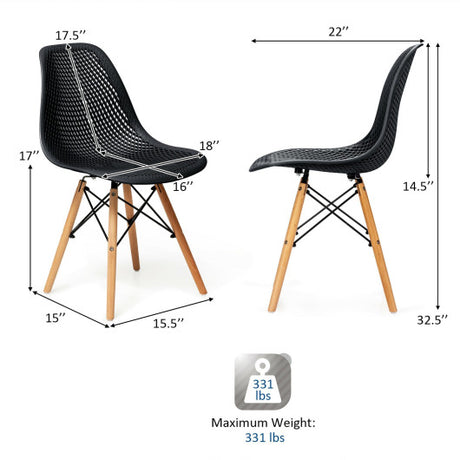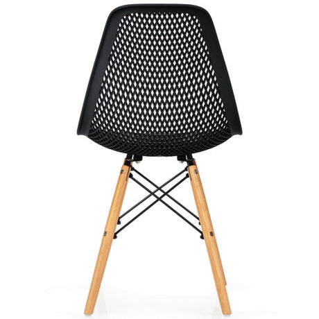4 Pieces Modern Plastic Hollow Chair Set with Wood Leg-Black