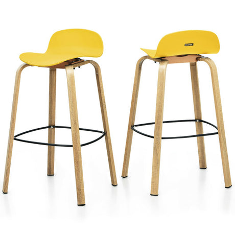 Set of 2 Modern Barstools Pub Chairs with Low Back and Metal Legs-Yellow
