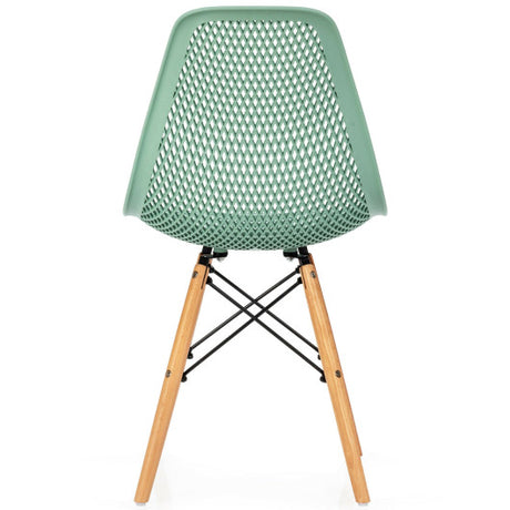 2 Pcs Modern Plastic Hollow Chair Set with Wood Leg-Green