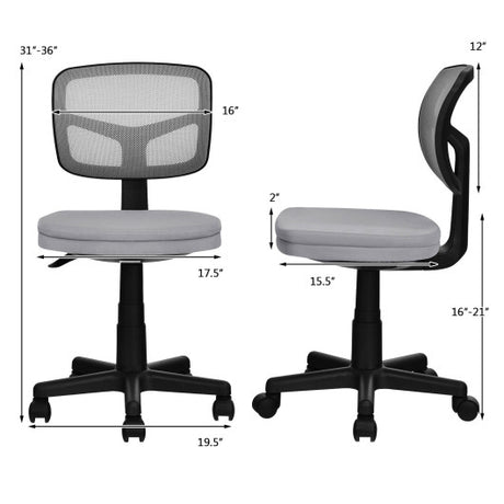 Armless Computer Chair with Height Adjustment and Breathable Mesh for Home Office-Gray