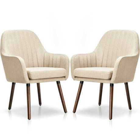 Set of 2 Fabric Upholstered Accent Chairs with Wooden Legs-Beige
